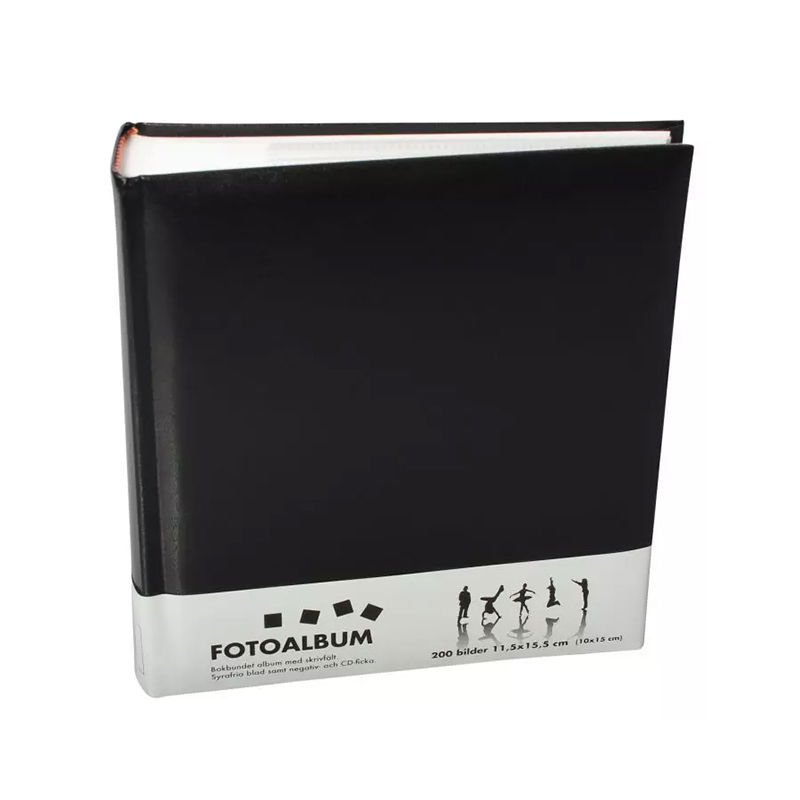 Detta bokbundna fotoalbum med vita sidor är ett enkelt och stilrent sätt att förvara och visa dina bilder. Albumet rymmer upp till 200 foton i storleken 11,5x15,5 cm och har insticksfickor som gör det lätt att placera bilderna utan lim eller tejp.