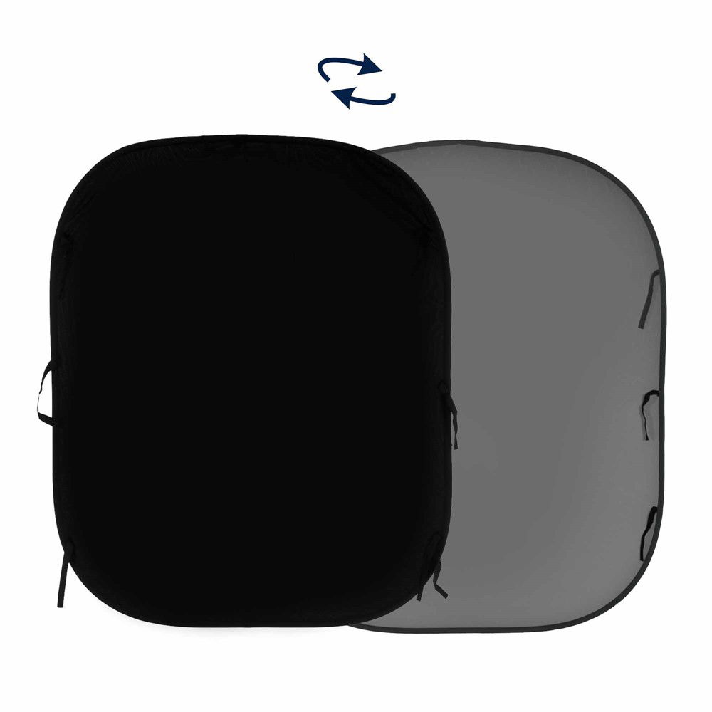 Bakgrunden har två olika ytor – en djup, matt svart sida och en neutral grå sida – som ger fler kreativa alternativ och möjliggör variation i både fotografering och videoproduktion.
