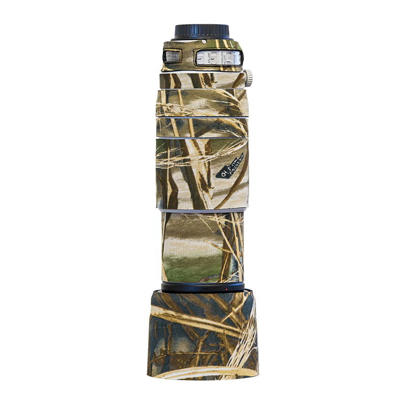 Skyddets mönster bryter upp objektivets siluett, vilket gör det mindre iögonfallande vid natur- och wildlife-fotografering. Det hjälper fotografen att närma sig djur utan att bli upptäckt, vilket kan vara avgörande för att få naturliga bilder.