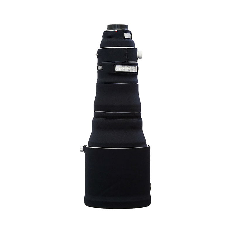 Den svarta färgen ger ett diskret och professionellt utseende, samtidigt som skyddets mönster bryter upp objektivets siluett. Det gör objektivet mindre iögonfallande vid natur- och wildlife-fotografering och underlättar för fotografen att närma sig motiv utan att bli upptäckt.