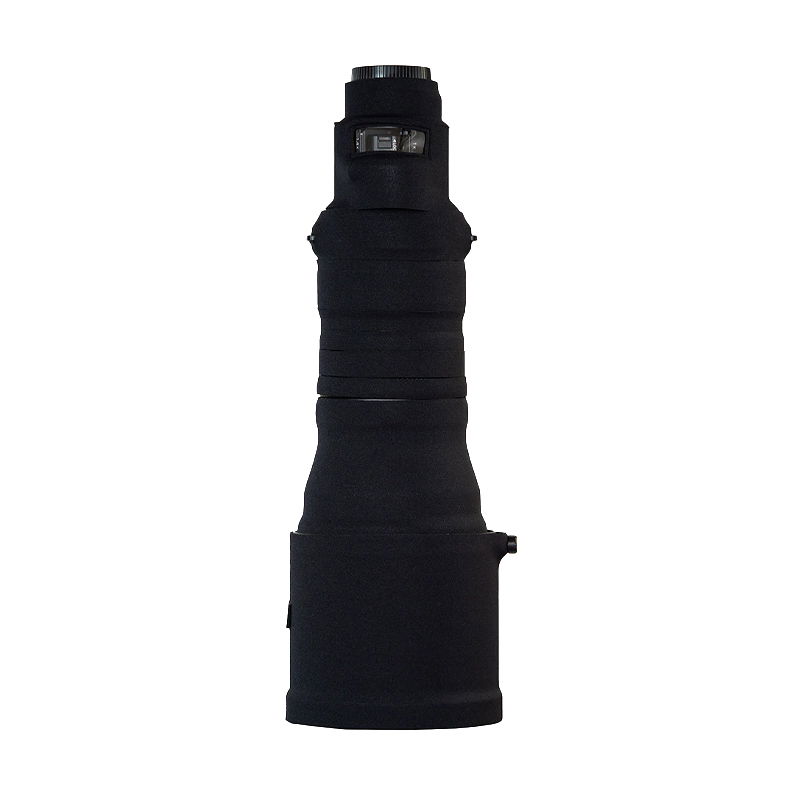 Den svarta färgen ger ett diskret och professionellt utseende, samtidigt som skyddets mönster bryter upp objektivets siluett. Det gör objektivet mindre iögonfallande vid natur- och wildlife-fotografering och underlättar för fotografen att närma sig motiv utan att bli upptäckt.