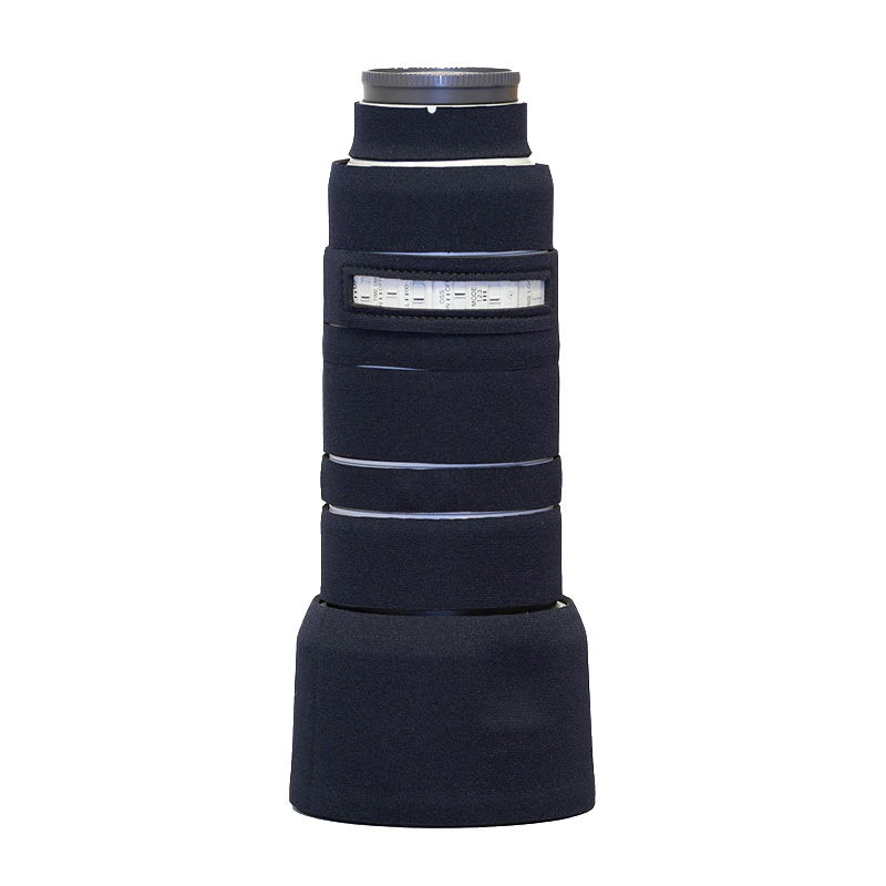 Den svarta färgen ger ett diskret och professionellt utseende, samtidigt som skyddets mönster bryter upp objektivets siluett. Det gör objektivet mindre iögonfallande vid natur- och wildlife-fotografering och underlättar för fotografen att närma sig motiv utan att bli upptäckt.