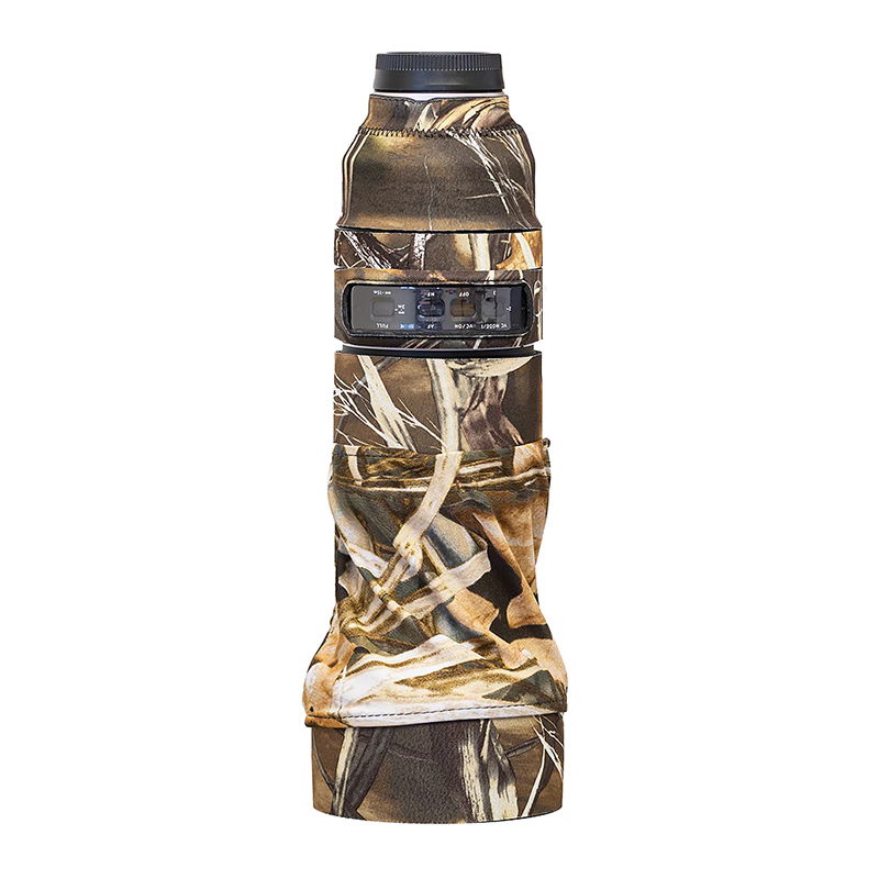 Skyddets mönster bryter upp objektivets siluett, vilket gör det mindre iögonfallande vid natur- och wildlife-fotografering. Det hjälper fotografen att närma sig djur utan att bli upptäckt, vilket kan vara avgörande för att få naturliga bilder.